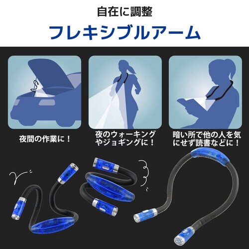 首に掛けて使えるLEDネックライト。首への負担が少ない軽量設計。フレキシブルアームで自由自在に角度調整できます。左右個別に明るさを変更できます |