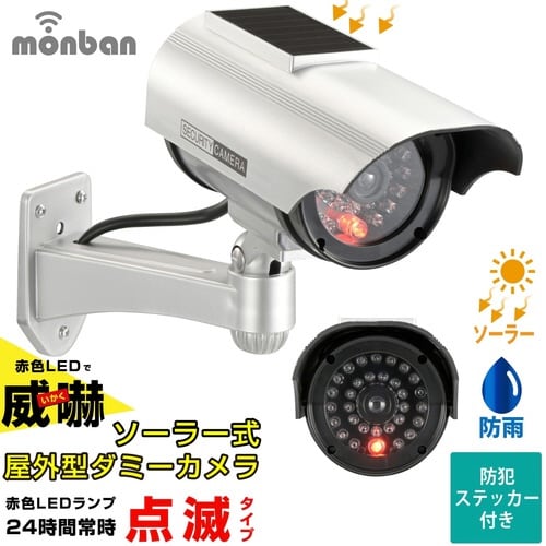 明るいときはソーラー、暗いときは乾電池で点滅。24時間常にLEDランプが点滅するので、威嚇効果があります。本物の防犯カメラそっくりのボディを採用 |