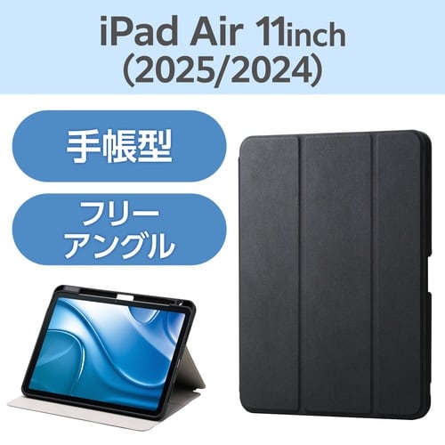iPad Air ケース 11インチ ( M3 / M2 ) マグネット式フラップ 軽量 ブラック
