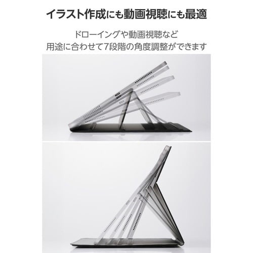 ドローイングに最適!シーンに合わせた7段階の角度調整が可能な薄さにこだわったスリムなフラップケースです。マグネット内蔵のケースに簡単に取り付け出来ます。 |