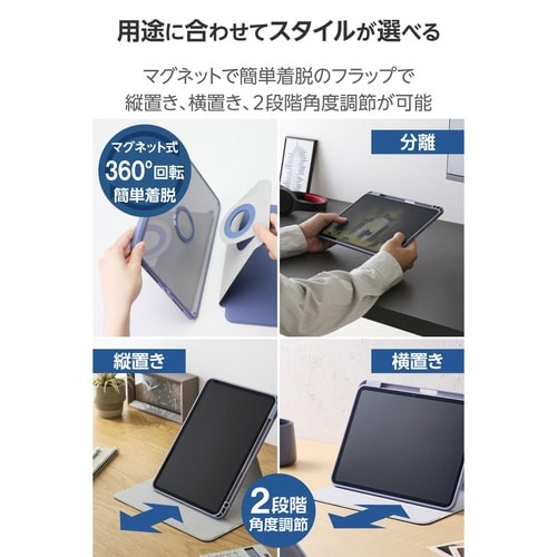 iPad Pro ケース 11インチ ( M4 ) マグネット着脱 360度回転 ブルーグレー