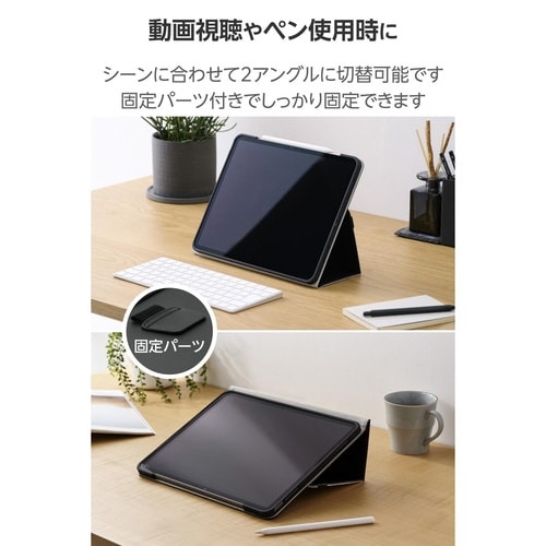 ベルト付きで持ち運びに最適な軽量設計の耐衝撃フラップケースです。動画視聴やタイピングなどシーンに合わせて2アングルにできます。ペンホルダー付き。ビジネスシーンでのご利用にもおすすめです。 |
