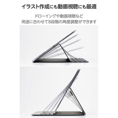 ドローイングに最適!シーンに合わせた8段階の角度調整が可能な薄さにこだわったスリムなフラップケースです。マグネット内蔵のケースに簡単に取り付け出来ます。 |