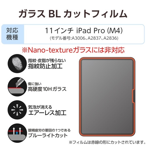 11インチ iPad Pro (M4) ガラスフィルム ブルーライトカット