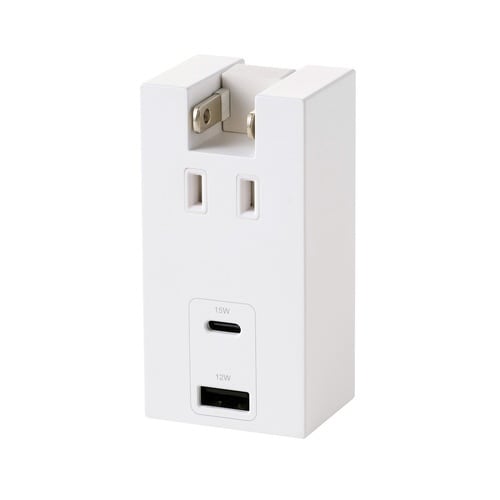 ACアダプター不要。スマートフォンやワイヤレスイヤホンなどの充電を、これ1台で。AC差込口、USB−Aポート、USB Type−Cポート各1つずつが一体になったモバイルUSBタップです。 |