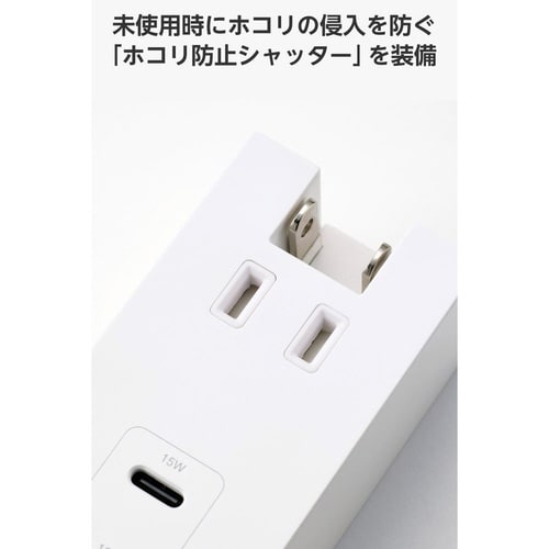 電源タップ USB 直挿し (コンセント1口 Type−C×1 USB−A×1) ホワイト