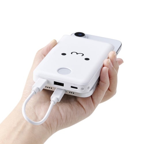 モバイルバッテリー 10000mAh 小型 22.5W充電 ケーブルストラップ付 白×黒