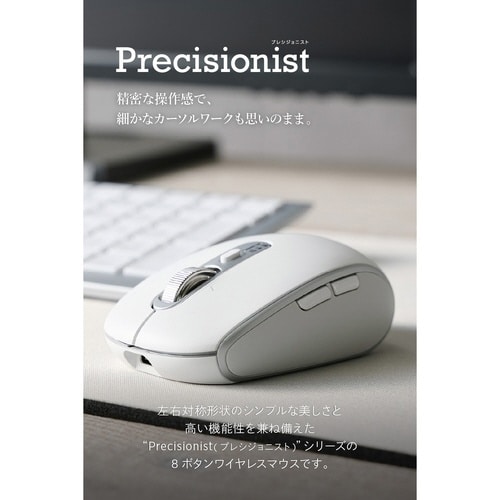 ワイヤレスマウス Precisionist Bluetooth 無線 2.4GHz 両対応 8ボタン Mサイズ ホワイト