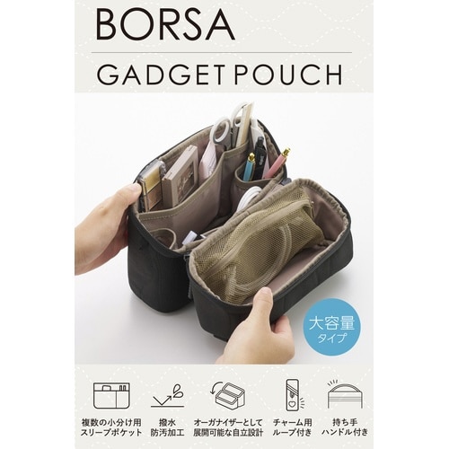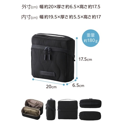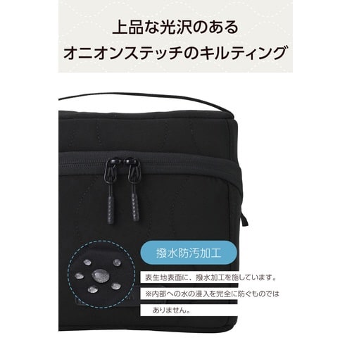 ガジェットポーチ 大容量 自立型 ハンドル付き 撥水 キルティング ブラック