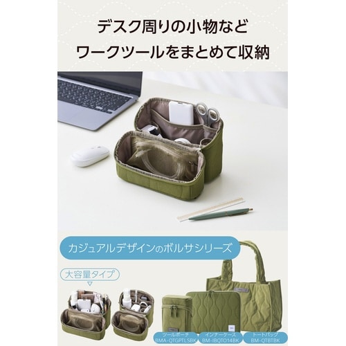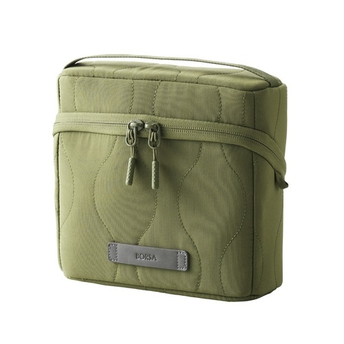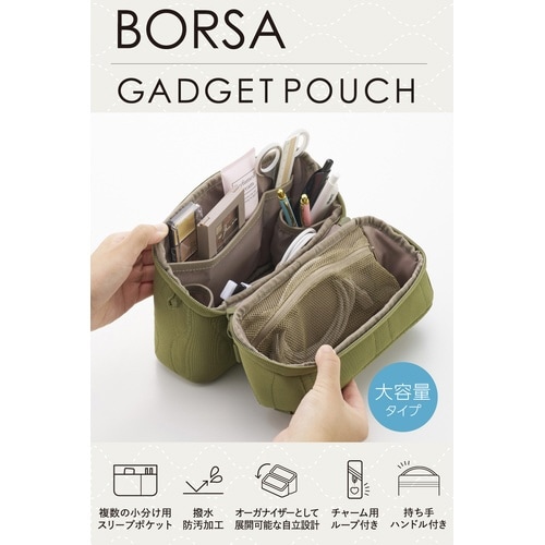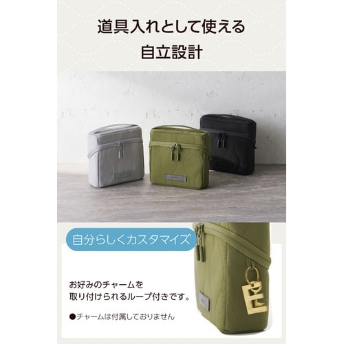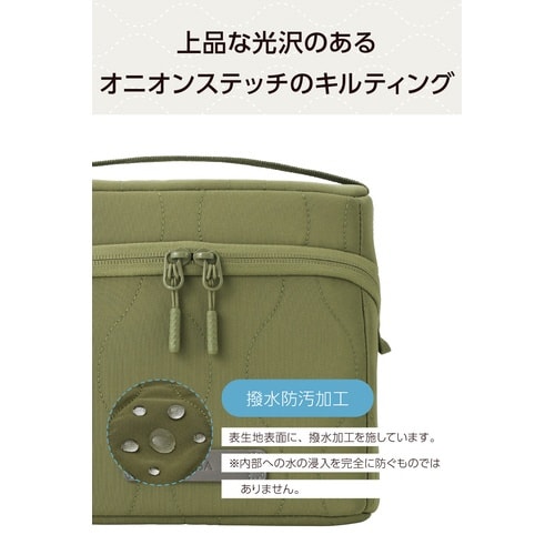 ガジェットポーチ 大容量 自立型 ハンドル付き 撥水 キルティング カーキ