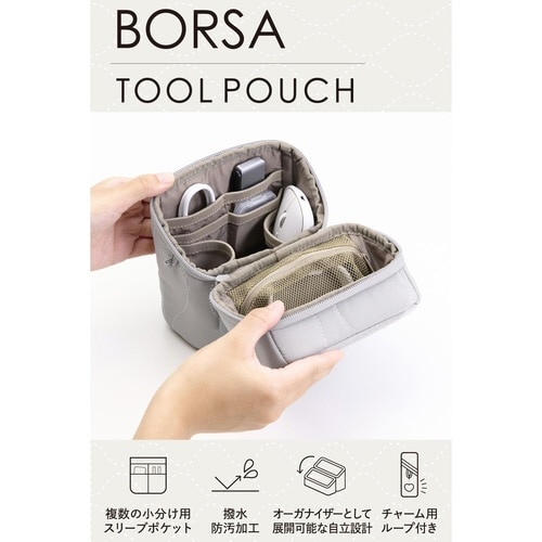 デスク周りの小物やガジェット、筆記用具などのワークツールをまとめてスッキリ収納!デスク上で道具入れとして使える、スタンドタイプのツールポーチです。 |