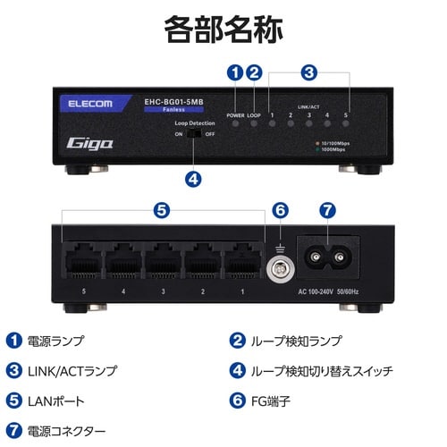 省スペースに設置可能なコンパクトモデル。 ファンレスで耐熱50℃に対応し、ループ検知機能も搭載したGiga対応、電源内蔵のメタル筐体5ポートハブです。 |
