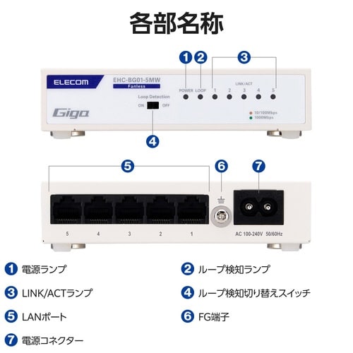 スイッチングハブ LANハブ 5ポート Giga対応 メタル筐体 ホワイト