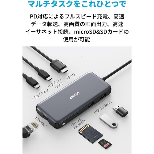 PowerExpand 8−in−1 USB−C PD 10Gbps データ ハブ グレー
