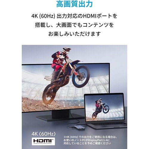 10Gbpsの高速データ転送、PD対応によるフルスピード充電、高画質出力に対応したUSB−Cハブ。 |