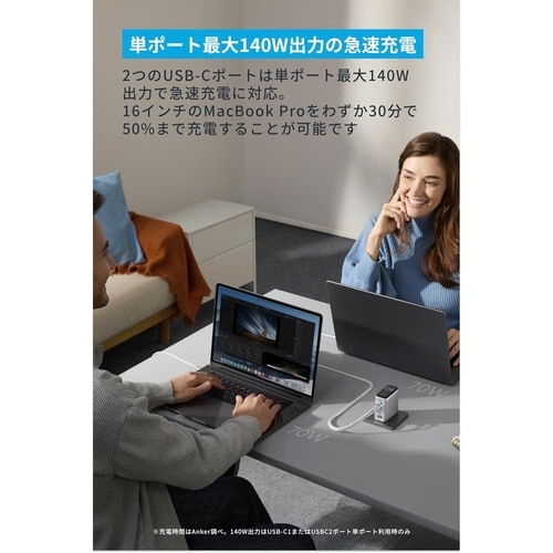 Charger (140W,4 Ports) with USB−C & USB−C ケーブル シルバー
