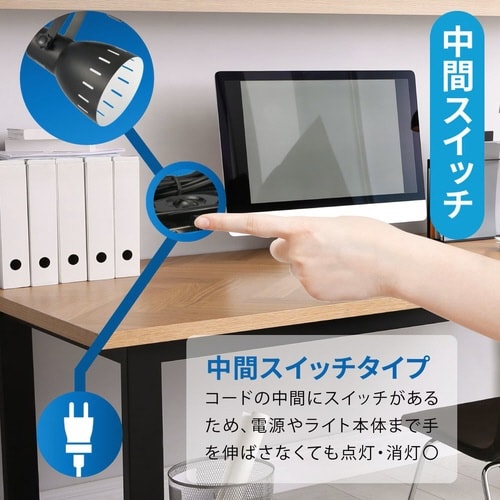 電球はお好みの光源色でご使用できます。口金E26、白熱電球60W以下、LED電球10W以下の電球に対応。中間スイッチ付き。光の向きが自由に変えられます。強力クリップで簡単に固定できます |