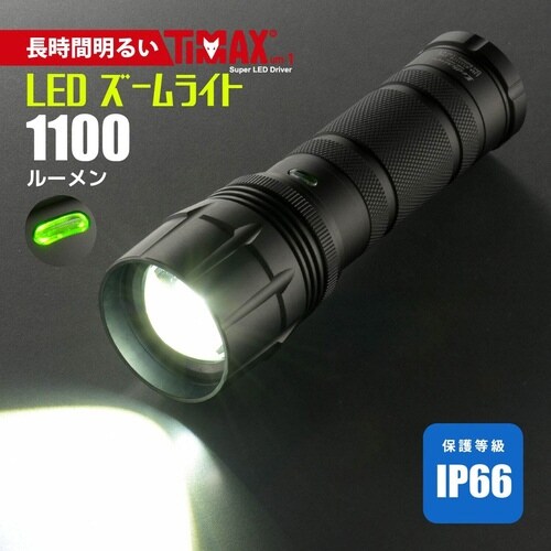 スライドフォーカス機能付き。3種類(LOW/HIGH/FLASH)の点灯モード。1100ルーメン、27880カンデラの明るさ。電池残量インジケーター付き |