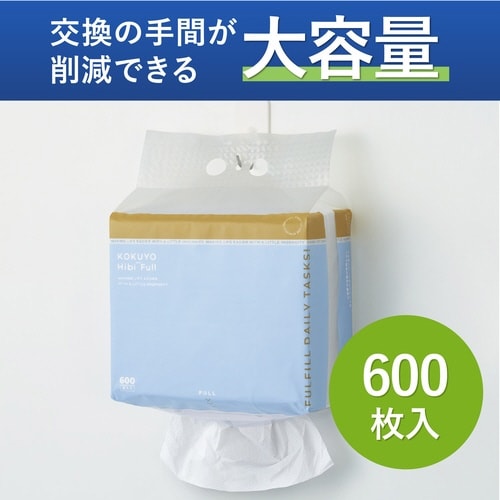 ヒビフル 大容量で交換の手間が減る吊り下げられるペーパータオル シングル 再生紙 中判 1パック(600枚入り) ペーパータオル 洗面所 トイレ 壁掛け 業務用 KOKUYO HibiFull