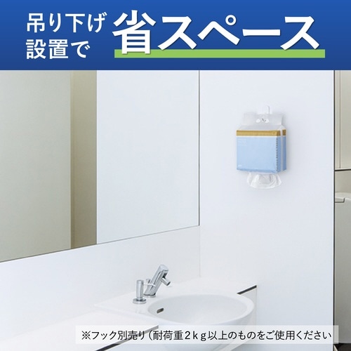 大容量600枚入りで交換の手間を削減。フック穴付きで吊るして設置できるため場所を取らずに設置できます。紙を下から取り出せるので未使用の紙が汚れにくくて衛生的なペーパータオルです。 |