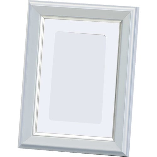 ハガキ判サイズの遺影額。淡いカラーで穏やかな雰囲気を演出します。スタンド付。