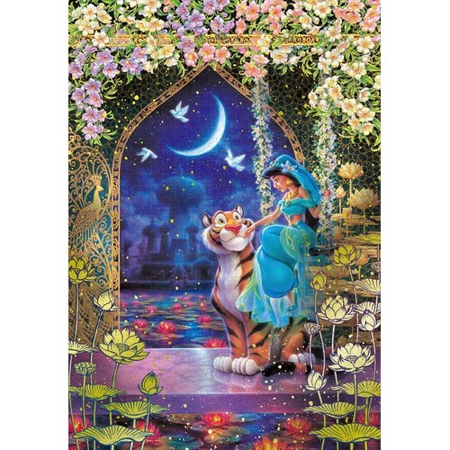 ギルディングスタイルは鮮やかなゴールドで絵柄全面を彩るとても豪華なジグソーパズル。そのギルディング仕様をあしらったジャスミンとラジャーのゴージャスな絵柄は雰囲気たっぷり。 |