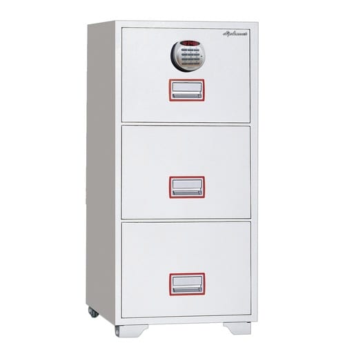大量の書類も整理して安全にファイリング。キャビネットタイプで使いやすい耐火金庫。強靭ボディ性能に加え、キーレスだから鍵の管理も不要です。 |