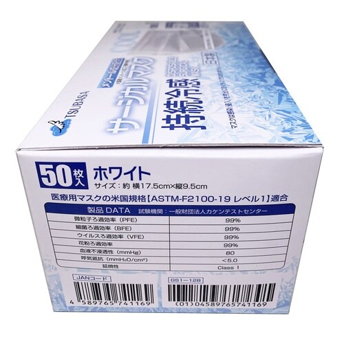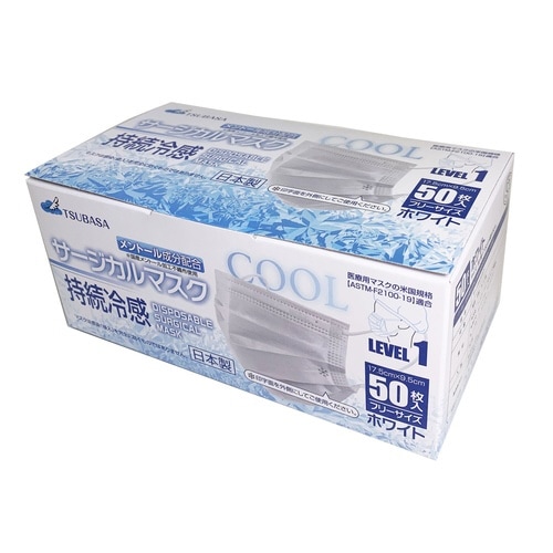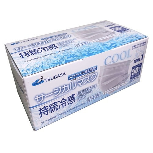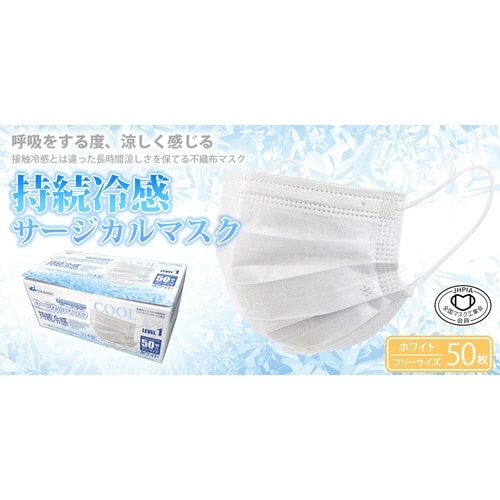 持続冷感サ−ジカルマスク クラス1 1箱(50枚入) メントール成分配合 ホワイト フリーサイズ