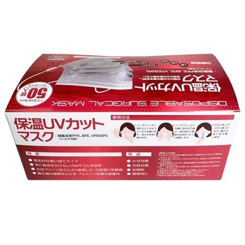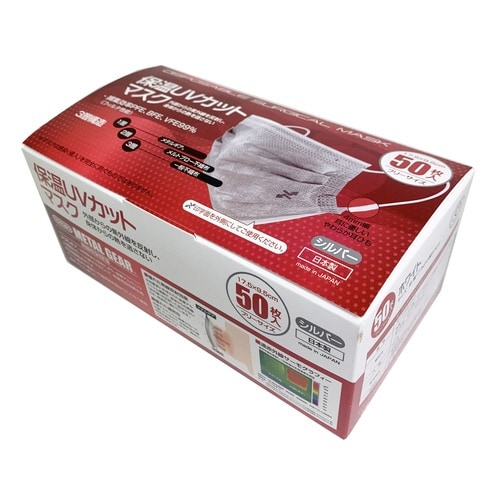 保温UVカットマスク 1箱(50枚入) 医療用マスククラス1 シルバー フリーサイズ