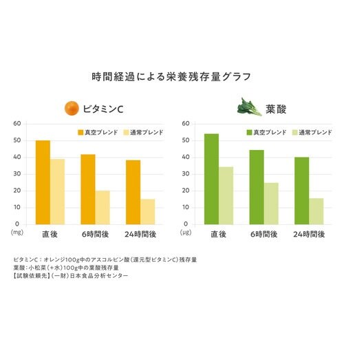 「栄養素が壊れる」「繊維質が摂れない」など、これまでのミキサーやジューサーが抱えていた課題を、真空の力でまとめて解決!AUTOボタン1つで真空化からブレンドまで全ておまかせ。 |