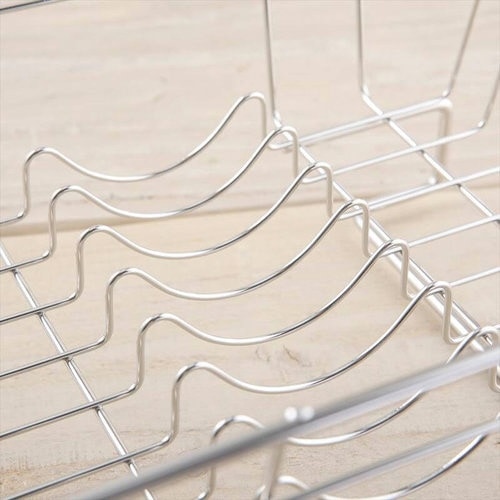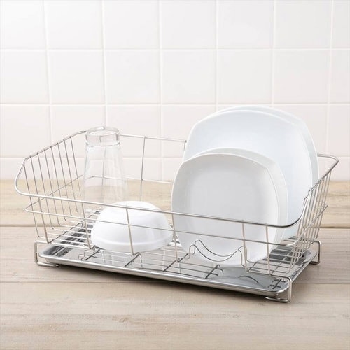 足高で、太くて丈夫な構造。コップやお椀も転がらずに立てられるM字型スタンドで、水切りが楽なスライドトレイです。 |