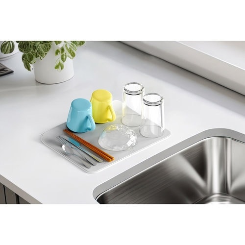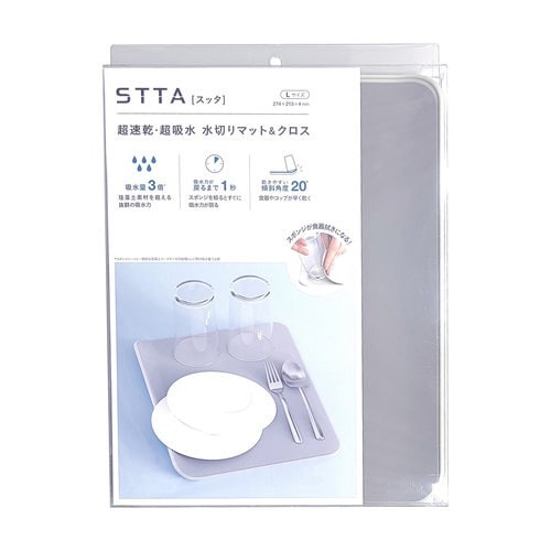 マットに使用している超吸水スポンジは珪藻土素材をしのぐほどの吸水力で食器などを素早く乾燥させます。柔らかくクッション性があるので落としても割れることがなく、食器などを傷つける心配もありません。 |