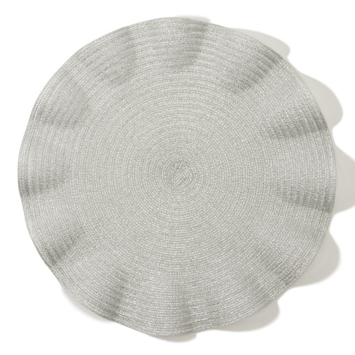 円形で、フリルのようなあしらいが華やかでフェミニンなランチマットです。円形のメインプレートとコーディネートすることで、食卓を華やかに引き立てます。