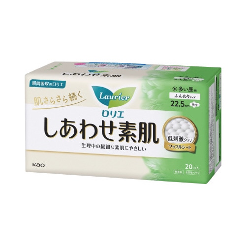 ずっとさらさら、だから肌にやさしい。ふんわりやわらかなつけ心地。低刺激タッチのワッフルシート採用。肌にあたる面が最小限だから(ロリエ生理用ナプキン内)、こすれにくい。 |