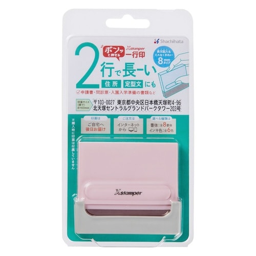 住所記入に便利な住所印としても好まれる一行印。長い住所でも2行で作成可能。郵便番号やマンション名まで記入できるからおすすめ。申請書や問診票、入園・入学・入所の準備など、住所記入が必要なシーンで活躍。 |