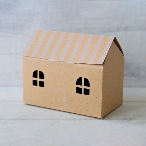 おうち型のかわいいギフト箱です。焼菓子約4から6個やパウンドケーキ向けです。上面がフルオープンになるので、お菓子の出し入れがとってもしやすいです。 |