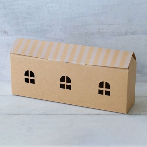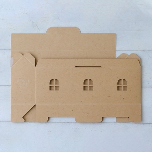 おうち型のかわいいギフト箱です。焼菓子が5から7個や、スリムパウンドケーキ向けです。上面がフルオープンになるので、お菓子の出し入れがとってもしやすいです。 |