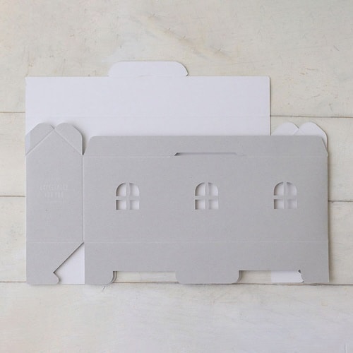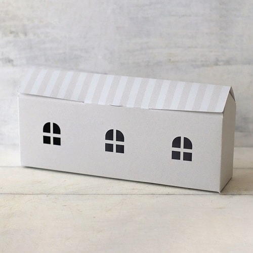 窓からチラッとお菓子が見えるおうち型のかわいいギフト箱です。焼菓子が5から7個や、スリムパウンドケーキ向けです。上面がフルオープンになるので、お菓子の出し入れがとってもしやすいです。 |
