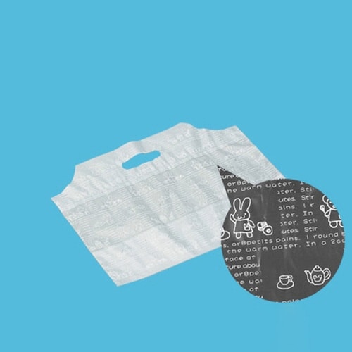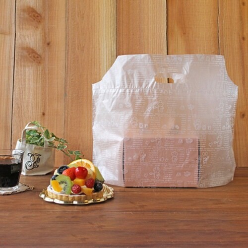 手提げタイプのポリ袋。サイズ:厚み0.03×W410×D160×H280mm |