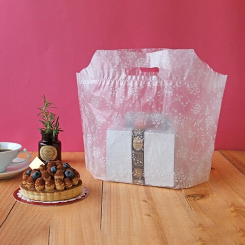 手提げタイプのポリ袋。サイズ:厚み0.03×W370×D160×H260mm |