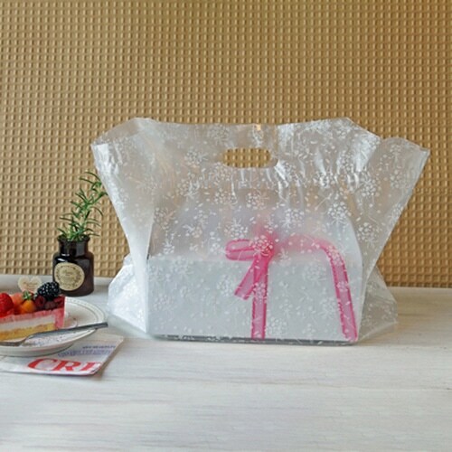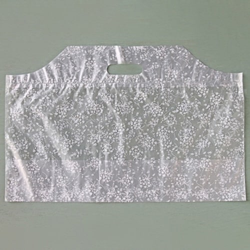 手提げタイプのポリ袋。サイズ:厚み0.03×W455×D170×H300mm |