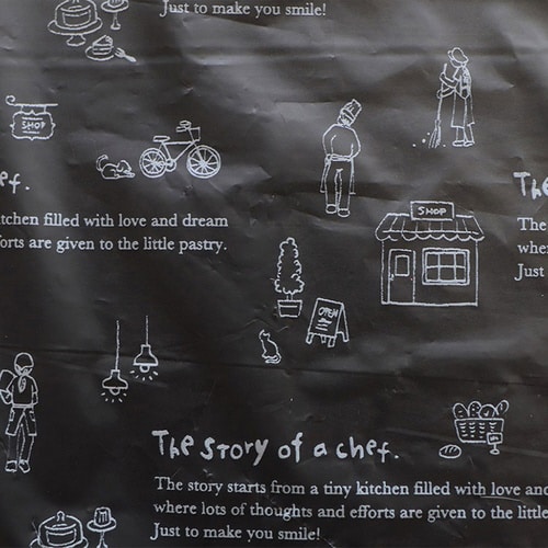 マチつきでたっぷり入る手提げバッグです。お菓子を作るシェフや店員さん、お店にお菓子のイラストがかわいく散りばめられたデザインです。何にでも合わせやすいので業種を問わずに使えます。 |