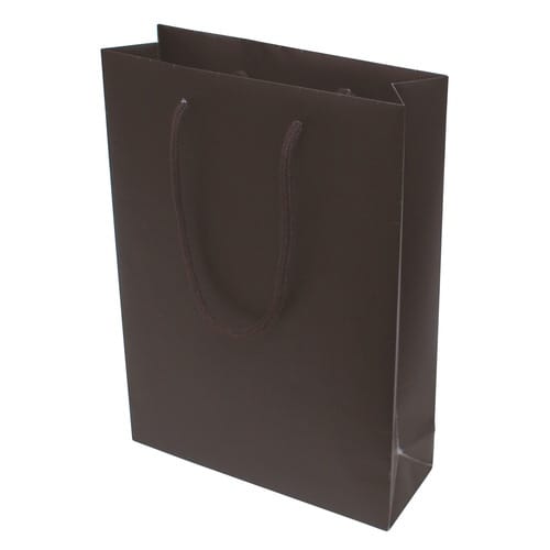 ペーパーバッグ。内容:本体。 材質:コート紙 マットPP貼 口・底台紙付,ハトメなし。 サイズ:225×80×320 |