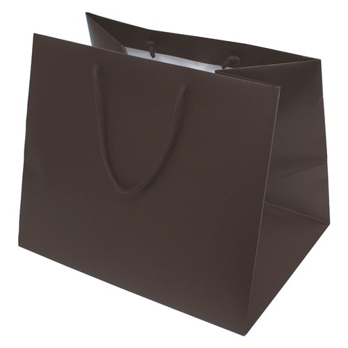 ペーパーバッグ。内容:本体。 材質:コート紙 マットPP貼 口・底台紙付,ハトメなし。 サイズ:360×260×300 |