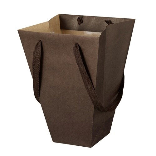 内側にラミネート加工した、ブーケ・アレンジ専用紙袋です。袋をたたむ方向と紐を逆に持つので、花束がつぶれにくい仕様です。 |