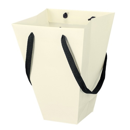 内側にラミネート加工した、ブーケ・アレンジ専用紙袋です。袋をたたむ方向と紐を逆に持つので、花束がつぶれにくい仕様です。 |