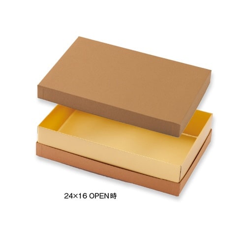 フタとソコのスキマのゴールドがキラリと映えるシリーズです。エレガントにギフトを演出します。貼箱完成品。中箱は金紙です。 |