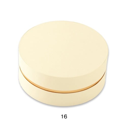 デイリーにもイベントにも使えるお洒落なギフトケースです。円型フォルムに発色のいいカラーとゴールドが映えます。貼箱完成品。中箱は金紙です。
