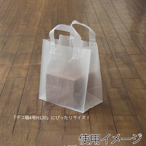 カットケーキやロールケーキのお持ち帰り用。4号のデコ箱サイズやロールケーキ箱の高さ150mmまで対応しているマチ広の透明バッグ。中身が透けて見える半透明のポリエチレン素材で、耐水性もバッチリです。 |
