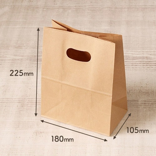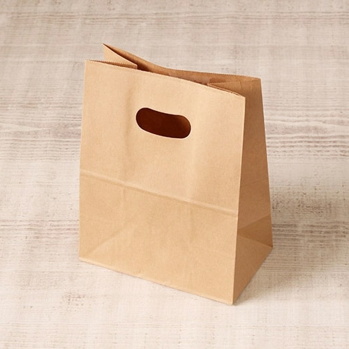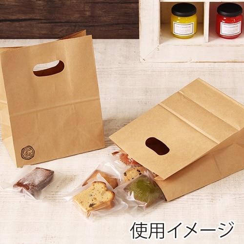 手穴のあいた、クラフトカラーの手提げ袋です。手穴の裏面にはフィルム貼りの補強加工が施してあり、持ち運びも安心です。お菓子などのお持ち帰り用にピッタリ。お |